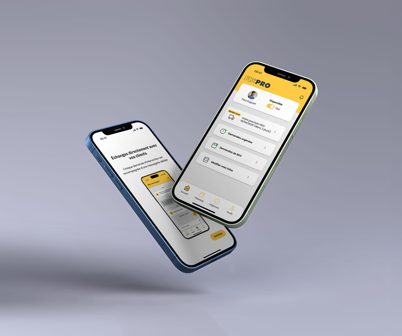 Fixpro, côté pro, est une application pensée pour les artisans souhaitant recevoir des demandes d’intervention ciblées en temps réel. L’objectif : fluidifier leur activité et maximiser leur visibilité locale.